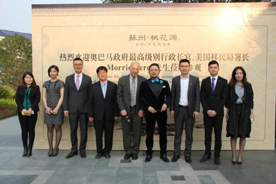 3月29日,奥巴马政府前最高级别行政长官、美国移民局署长Morrie Berez首次出访苏州,现身苏州桃花源。自2013年10月面世以来,苏州桃花源就持续引起全球文化、艺术、收藏大家乃至各国政要关注,近期更不断迎接全球政要、文化大师专访。苏州桃花源已不仅仅是一件世界文化遗产级艺术作品,更加成为全球范围内一种文化现象。