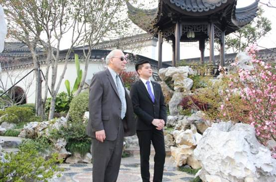 文化交流,是中美外交的重要组成部分。3月29日,奥巴马政府前最高级别行政长官、美国移民局署长Morrie Berez专访苏州桃花源,无疑成为中美文化交流的一个重要事件。Morrie 先生对桃花源的建筑和景观表示非常惊讶,他称赞道,一进入桃花源,就感受到一种不可思议的美。虽然他曾经访问过许多国家,看到过很多不同的建筑和园林,但桃花源无疑最具东方神秘之美。每一个亭台楼阁都似乎隐藏着一个优美动人的故事。